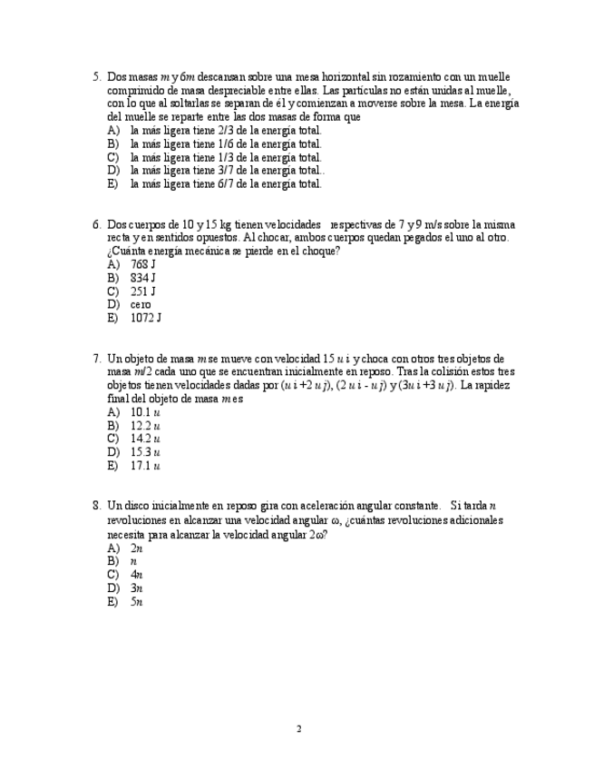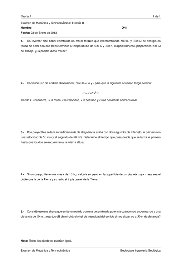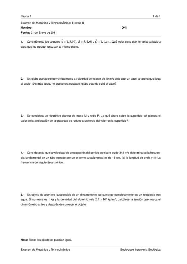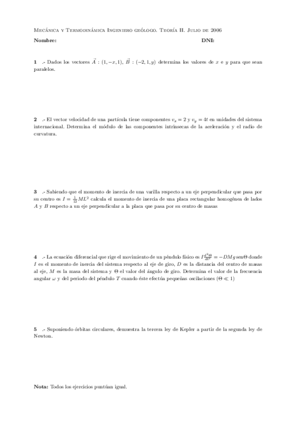 Primer examen parcial de mecánica y termodinamica del grado de Teleco, profesor Luis Javier