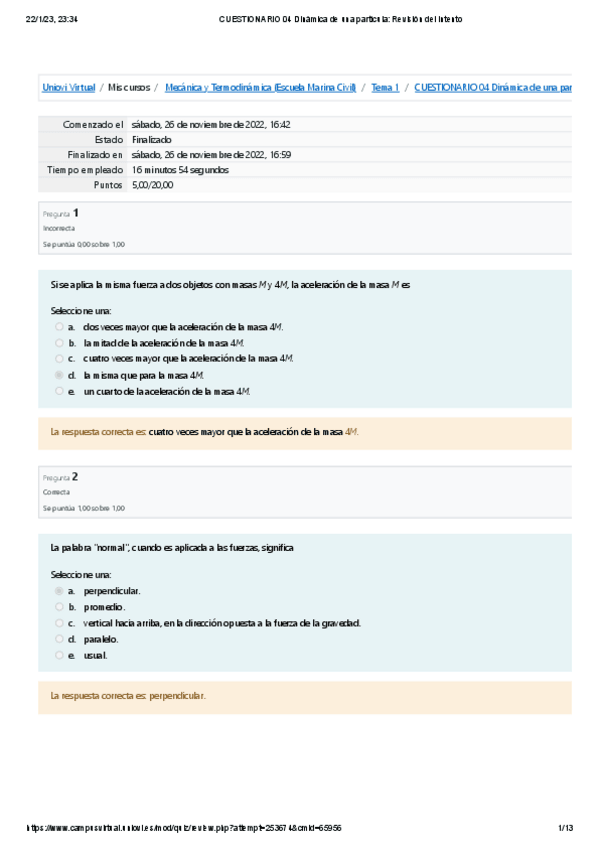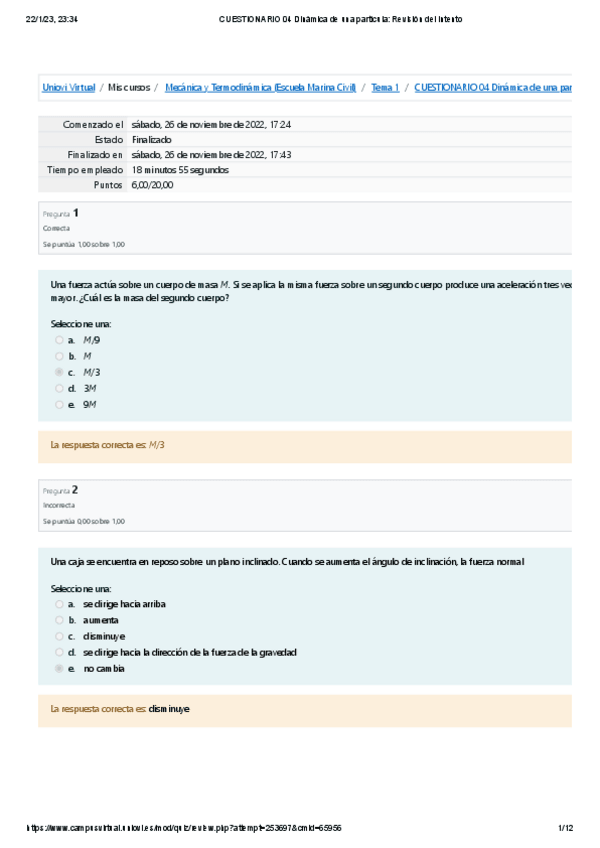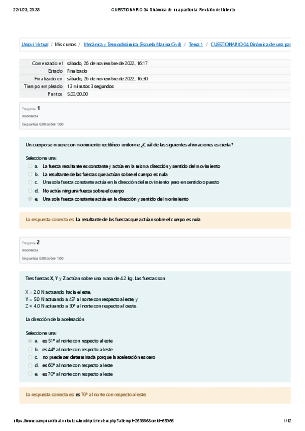 He publicado nuevos ejercicios de 1º Mecánica y Termodinámica: CUESTIONARIO-04-Dinamica-de-una-particula-Revision-del-intento5.pdf