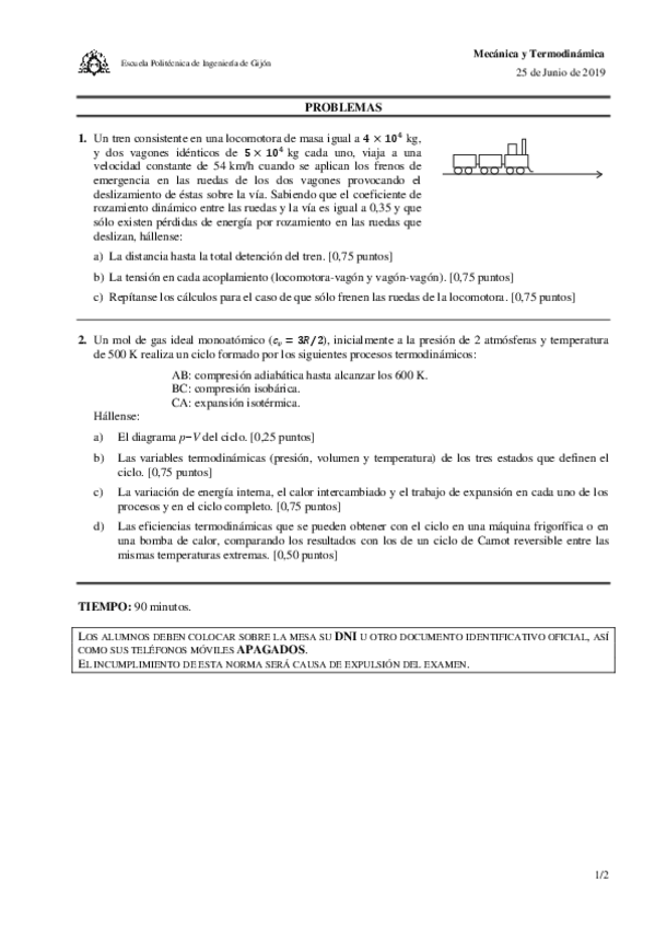 He publicado nuevos examenes de 1º Mecánica y Termodinámica: SOLUCIONjunio2019.pdf