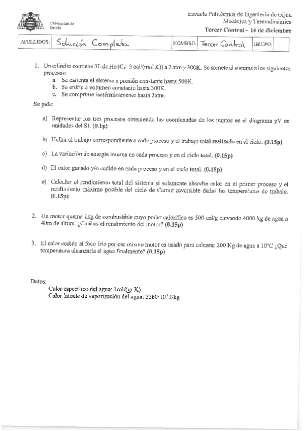 Mecánica y Termo, Exámenes Resueltos