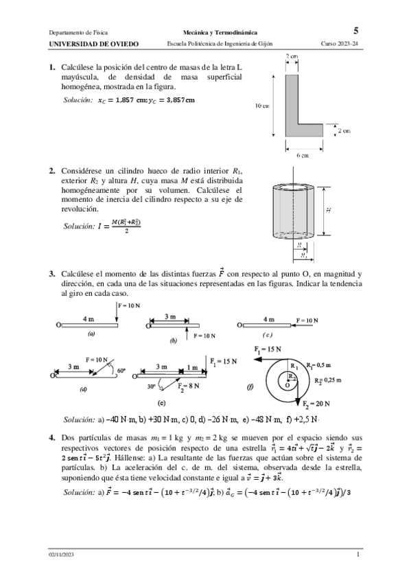 He publicado nuevos practicas de 1º Mecánica y Termodinámica: 1-Control-Mecanica-2024.pdf