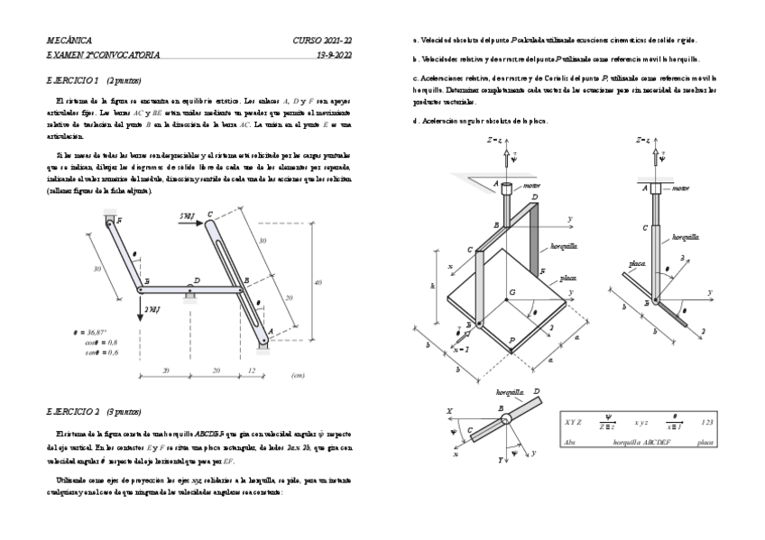 He publicado nuevos examenes de 2º Mecánica: Examen-estatica-21-12-21-RESUELTO.pdf
