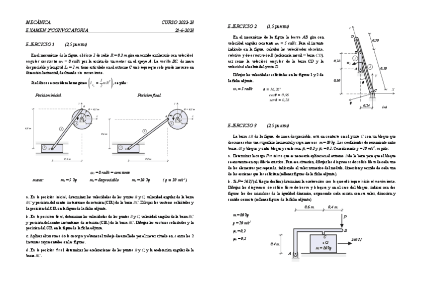 He publicado nuevos examenes de 2º Mecánica: Examen-1oConvocatoria-2023-RESUELTO.pdf