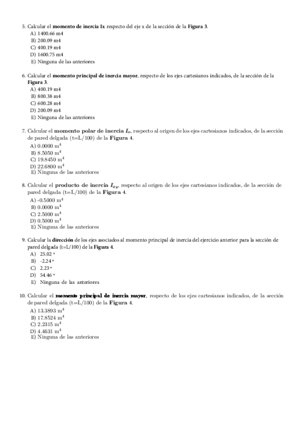 Exercicis inèrcia i propiedades de la sección