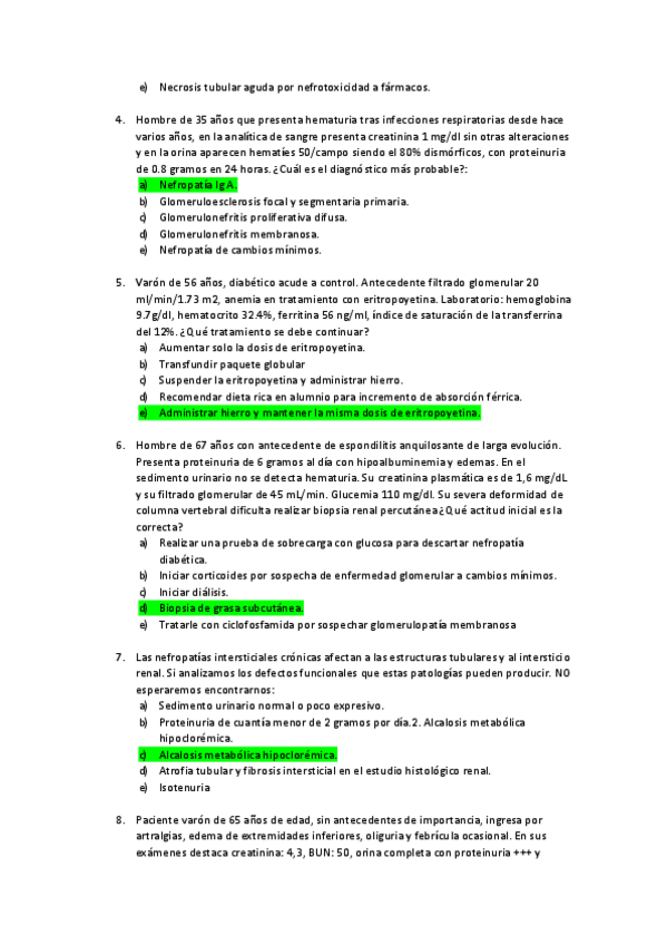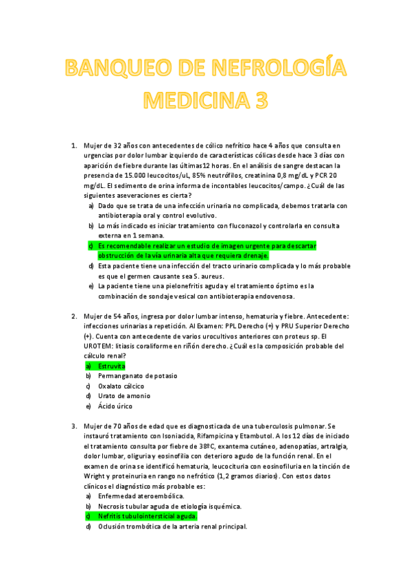 Examenes recopilados de Nefrologia (Banqueo de preguntas y respuestas) Curso: Medicina 3