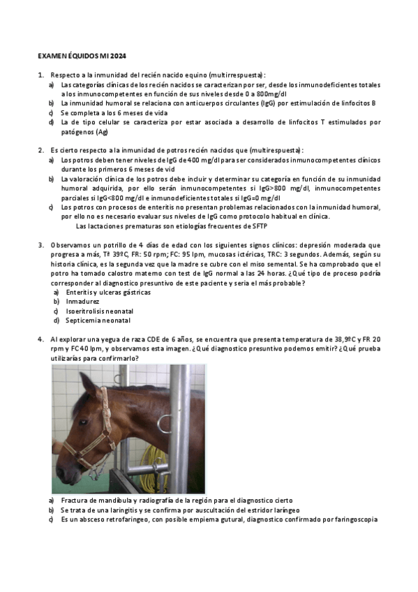 He publicado nuevos examenes de 4º Medicina Interna I: preguntas-parcial-caballos-2024.pdf