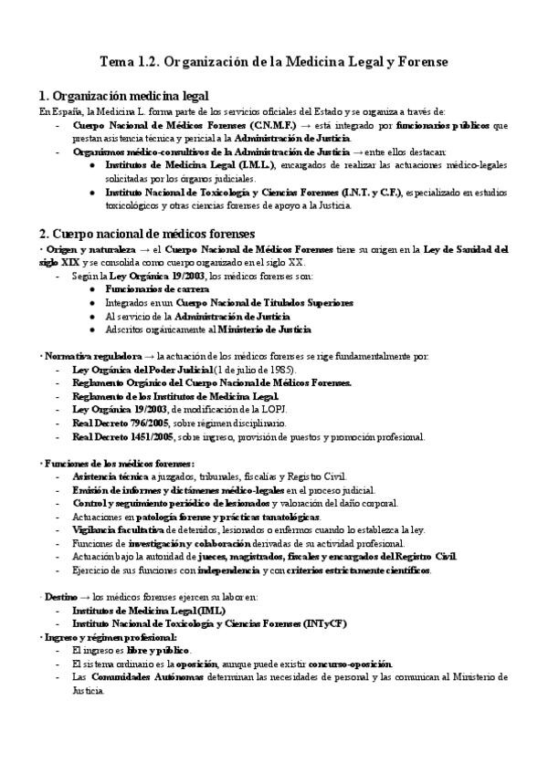 He publicado nuevos apuntes de 2º MEDICINA LEGAL Y CIENCIAS FORENSES: T1.2-Organizacion-de-la-Medicina-Legal-en-Espana.pdf