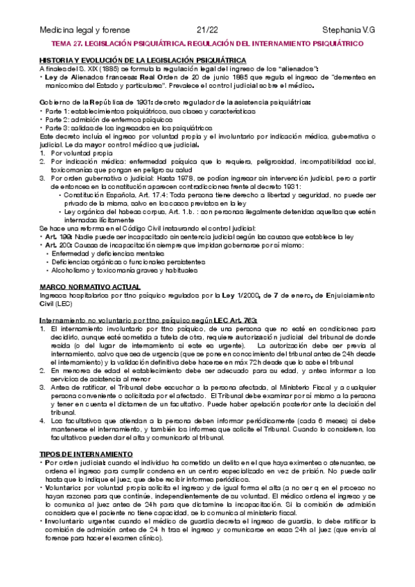 Apuntes Medicina Legal 2022-23