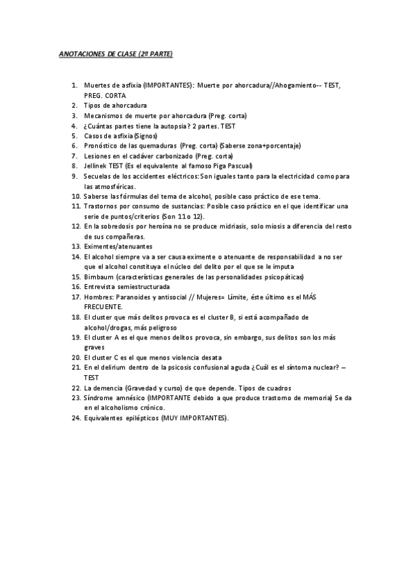 He publicado nuevos apuntes de 2º Medicina Legal: Posibles preguntas de examen