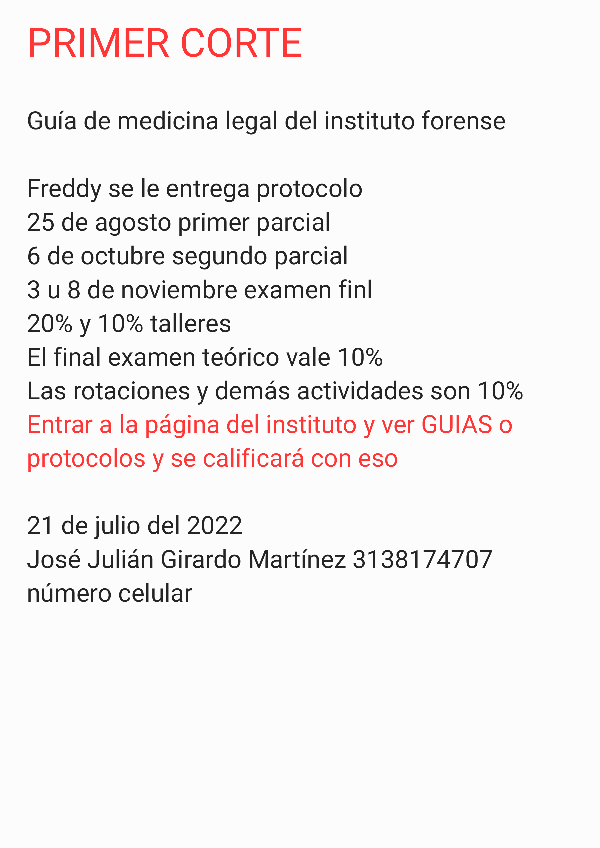 He publicado nuevos apuntes de 10º Medicina Legal: Primer Corte-Taller