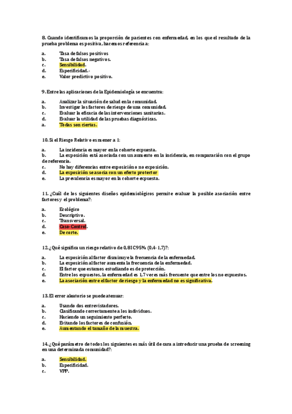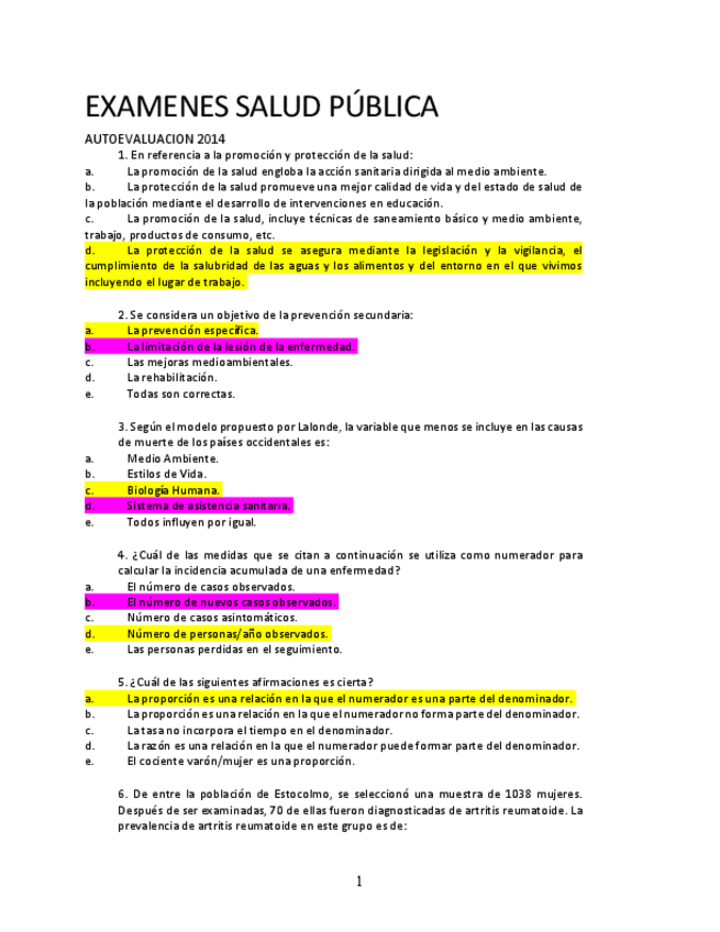 Las preguntas con subrayado rosa están corregidas (rosa correcto), en las que solo hay amarillo significa que es la correcta.