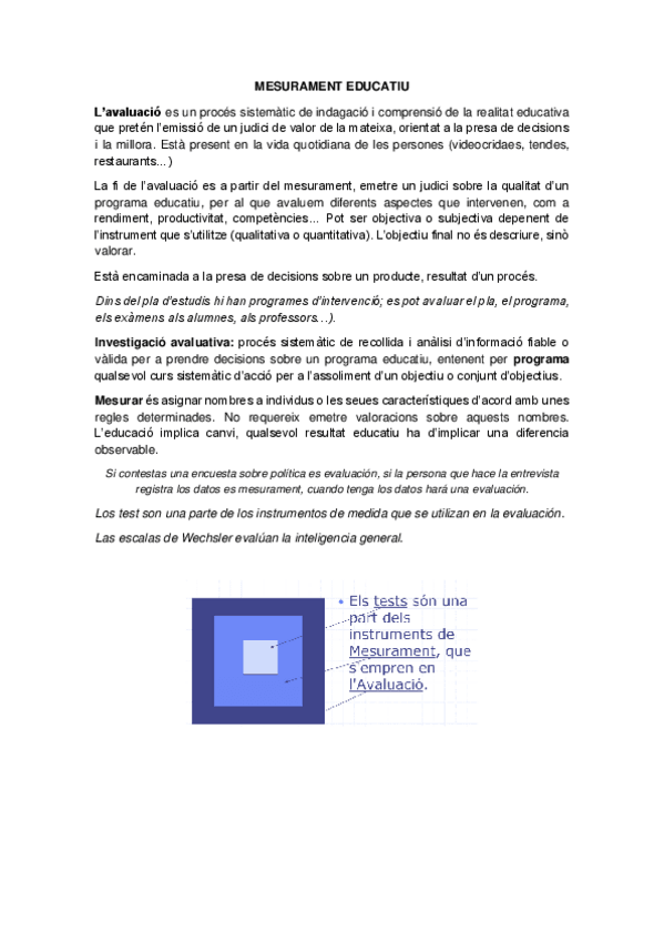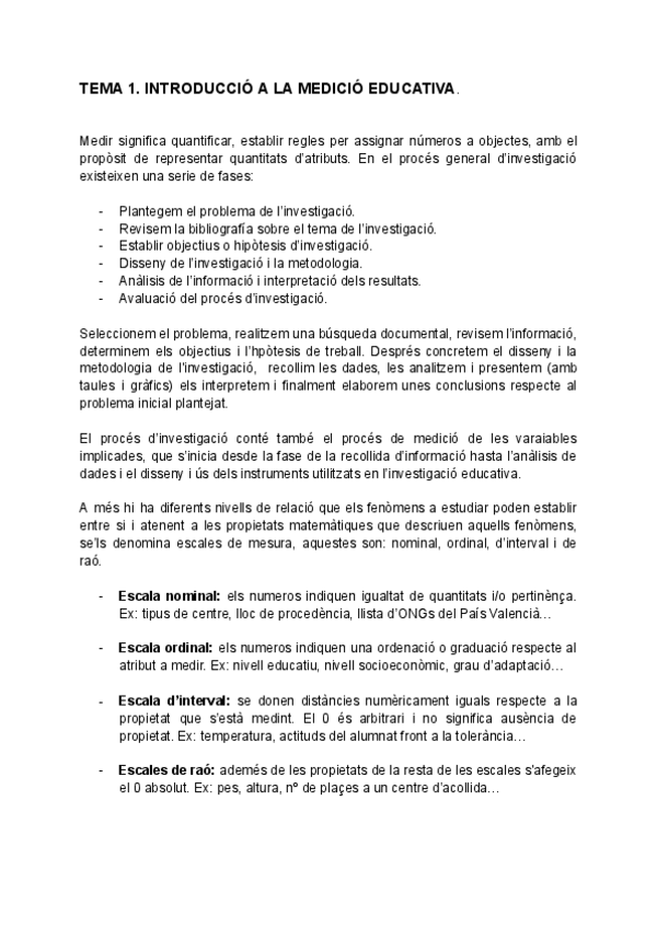 Estos son los apuntes completos de la parte teórica de Medición educativa en valenciano. Están extraídos de un powerpoint y de apunes que utilizan muchos docentes en sus asignaturas.