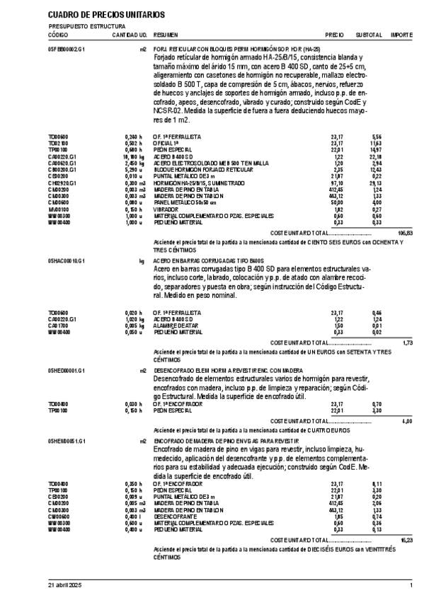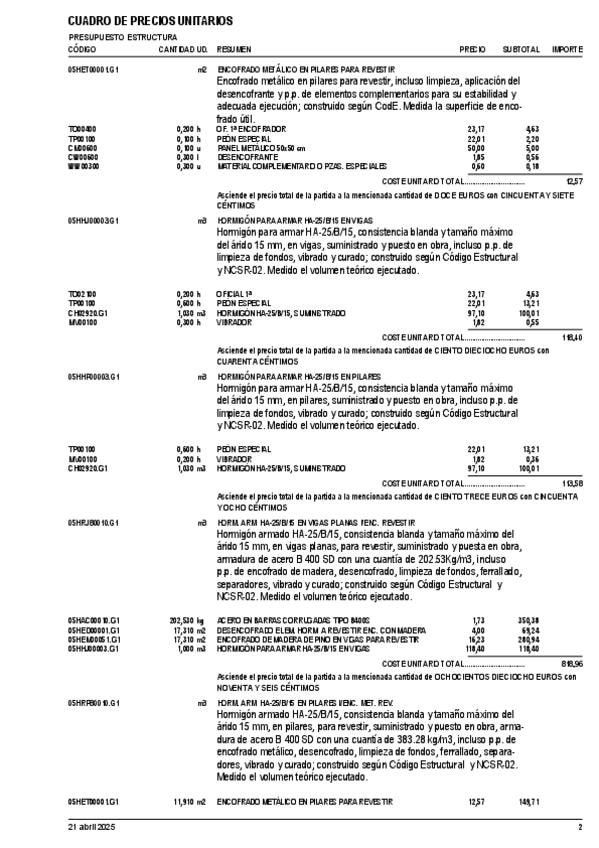 He publicado nuevos apuntes de 3º Mediciones y Presupuestos: Cuadro-precios-unitarios-G1.pdf