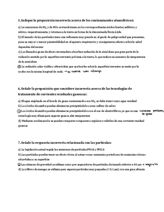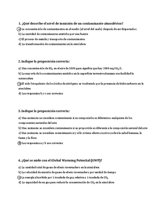 Preguntas tipo test de medioambiente recopiladas de exámenes anteriores (parciales y finales).
