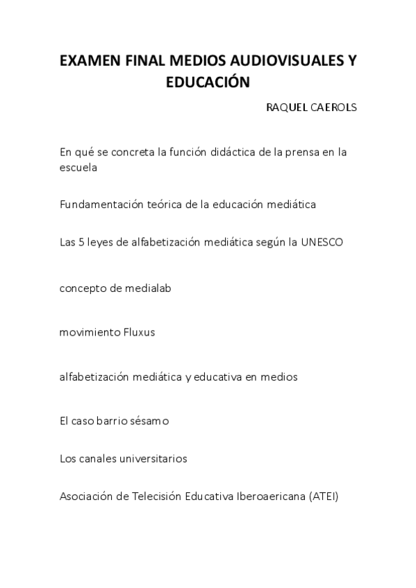 He publicado nuevos apuntes de 3º Medios Audiovisuales y Educación: examen final CAEROLS.pdf