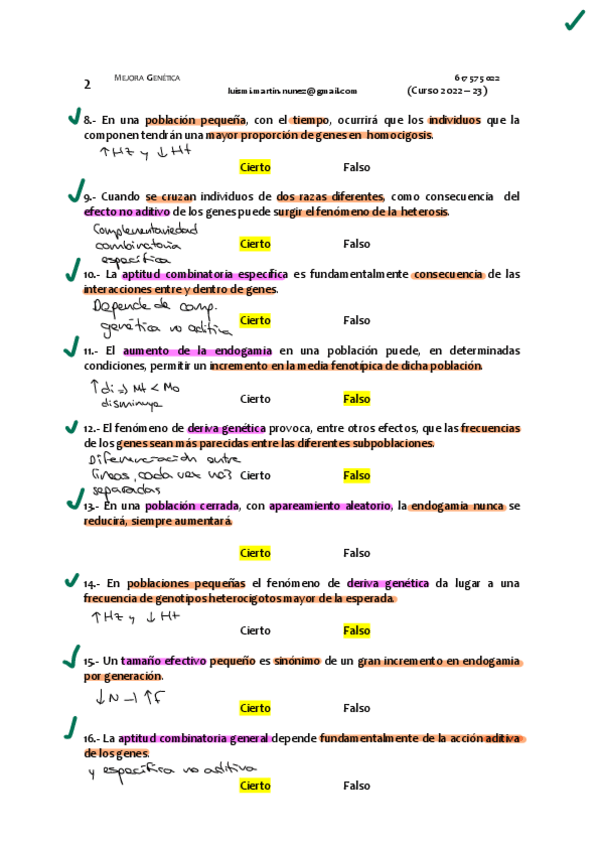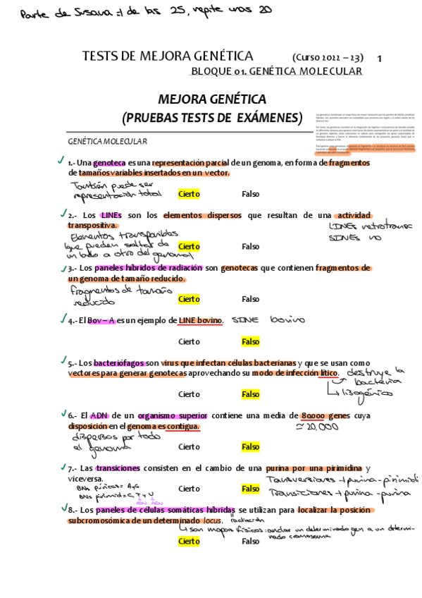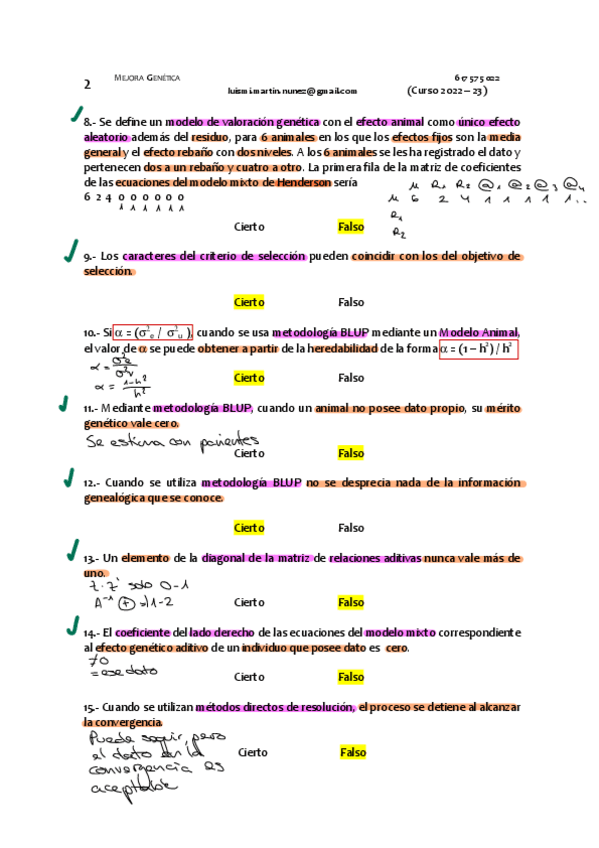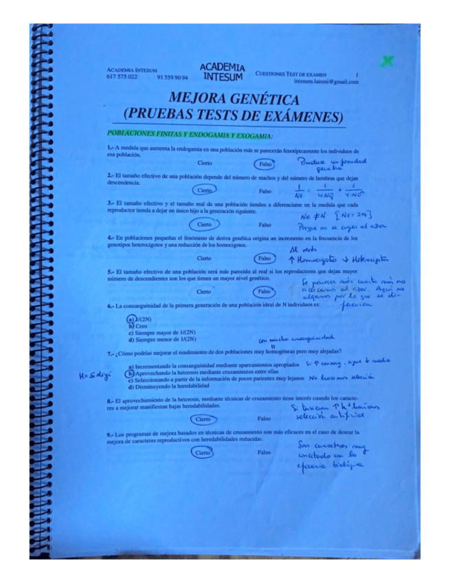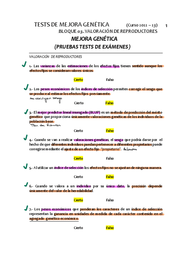 He publicado nuevos apuntes de 2º Mejora Genética de los Animales de Interés Veterinario: TEST examenes corregidos