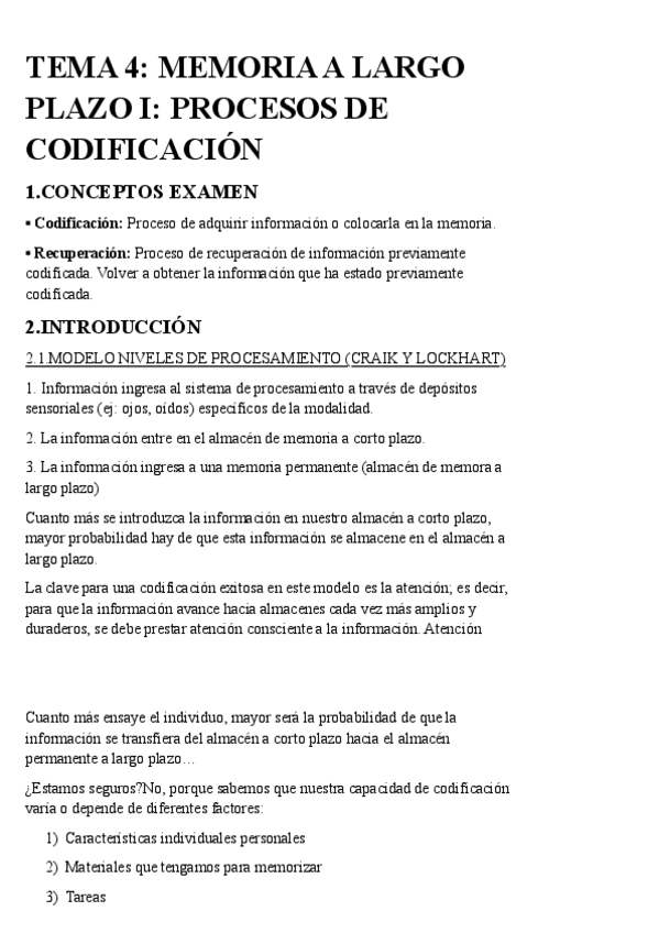 He publicado nuevos apuntes de 2º Memoria: Memoria-episodicacodificacion-Memoria.pdf