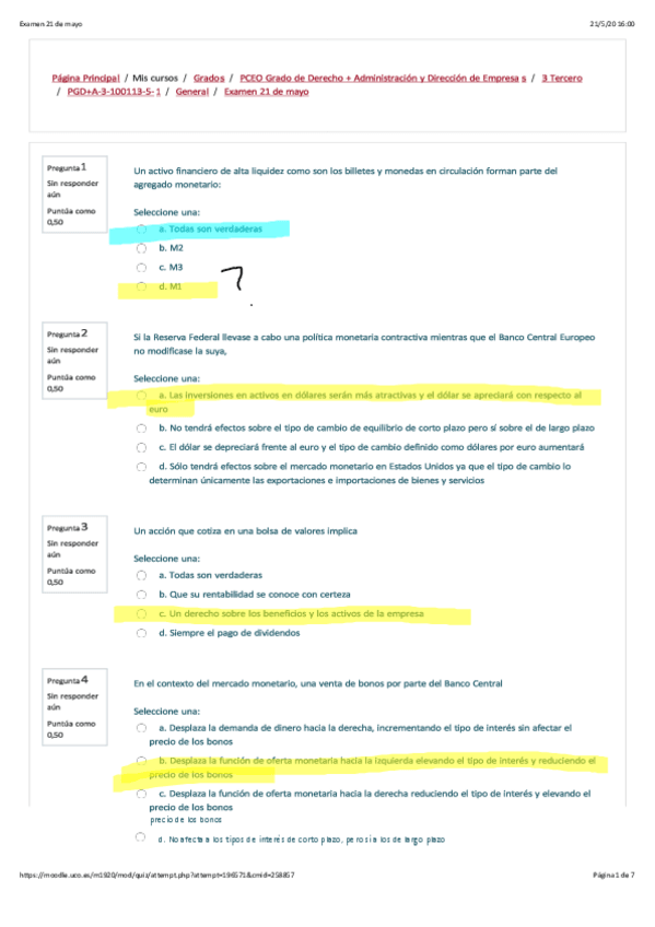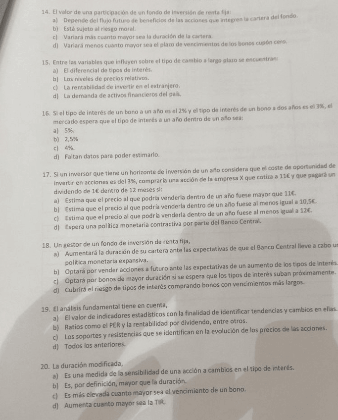 He publicado nuevos test de 2º Mercados Financieros: Examen de la doble resuelto 2020
