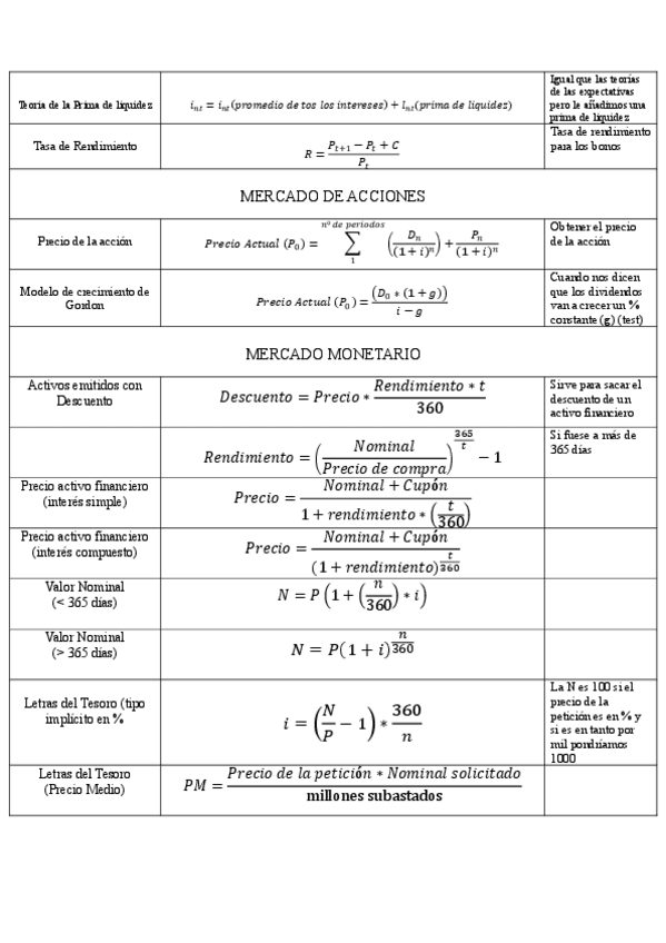 Todas las fórmulas que pueden caer en el examen de mercados tanto la parte test como el ejercicio practico