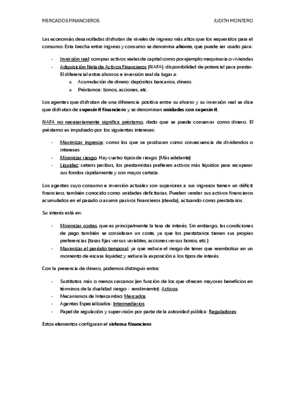 TEORÍA Mercados Financieros