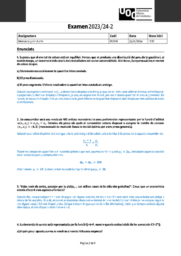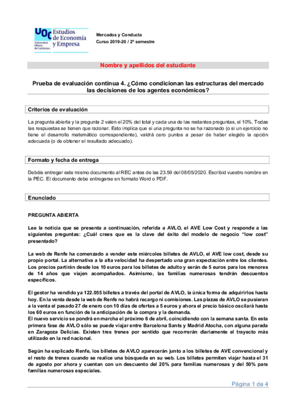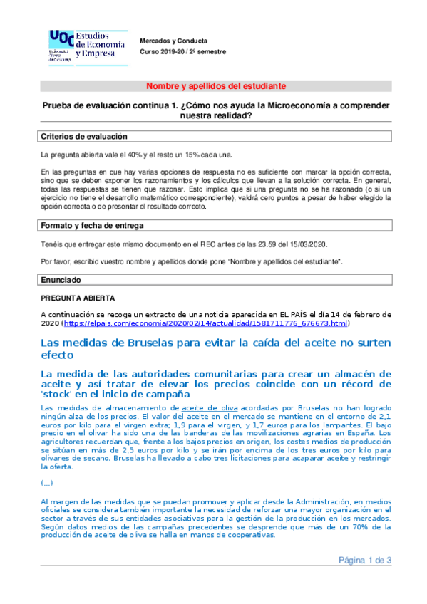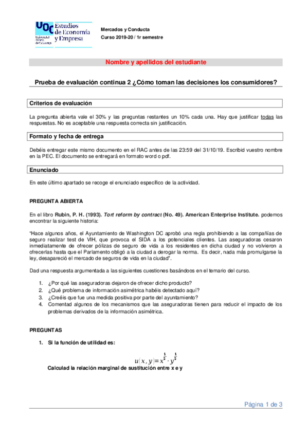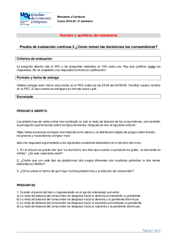 Curso online Mercados y conducta - Introducción a la microeconomía PEC1 UOC - Estadistix