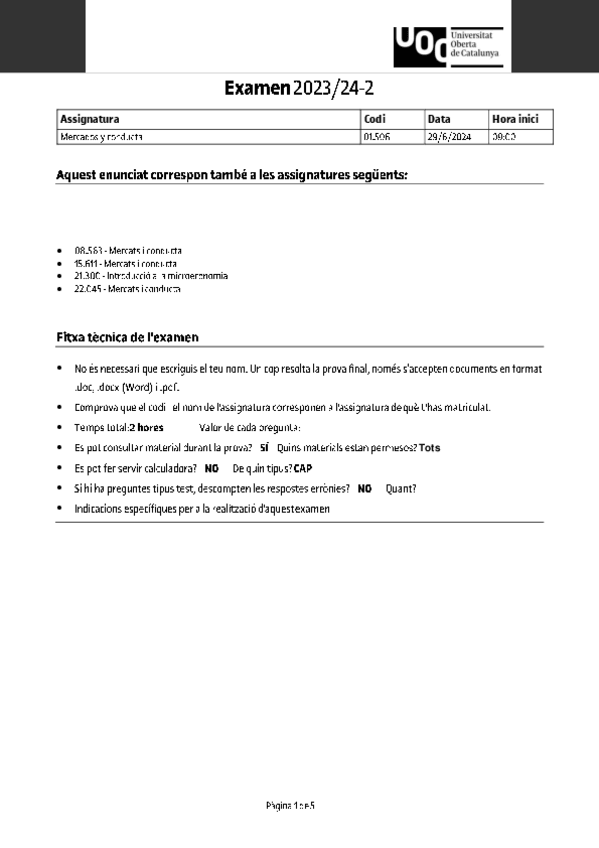 He publicado nuevos examenes de 1º Mercados y conducta: Ejemplo-Examen.pdf