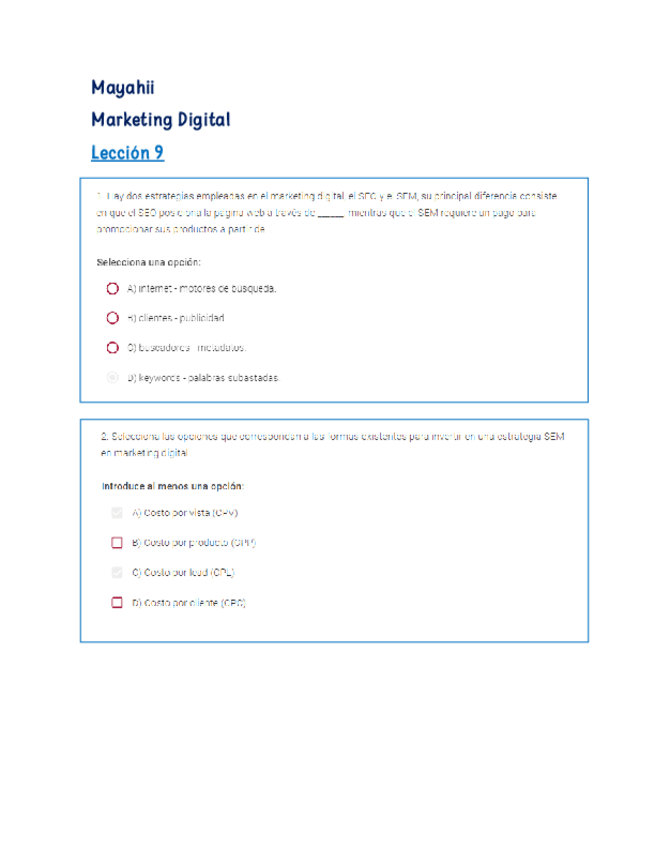 He publicado nuevos examenes de 4º Mercadotecnia digital: Marketing digital avanzado mayahii