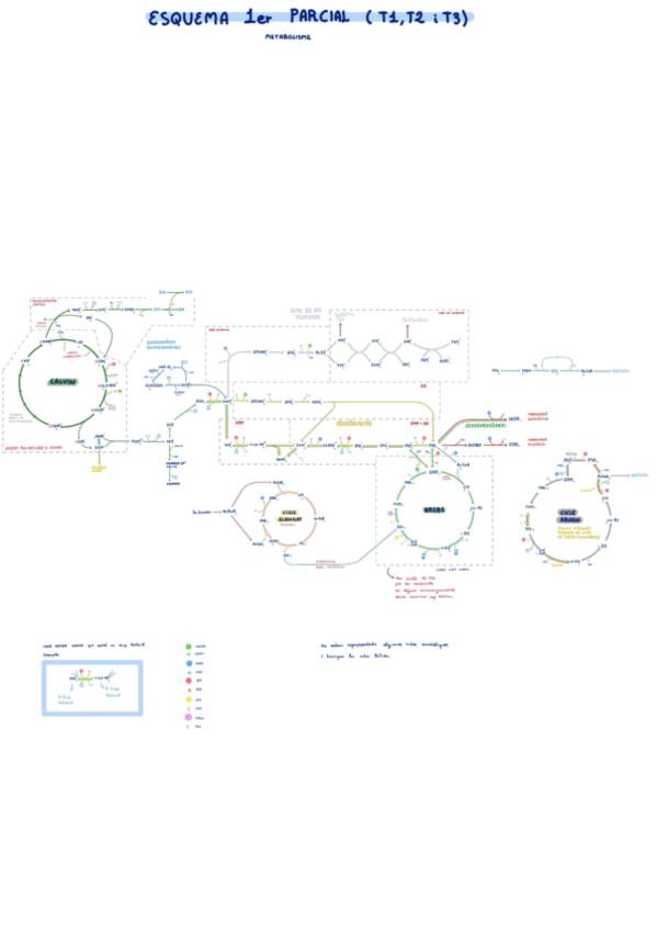 Esquema de todo el metabolismo del tema 1, 2 y 3. Faltan la ruta bífida y algunas rutas anabólicas del último tema.