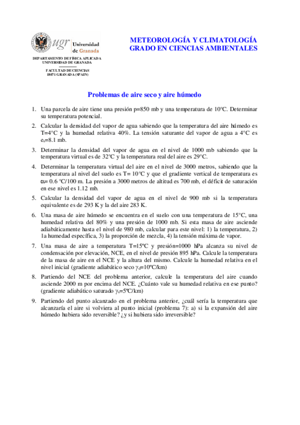 He publicado nuevos ejercicios de 2º Meteorología y Climatología: Problemas-Tema-1..pdf