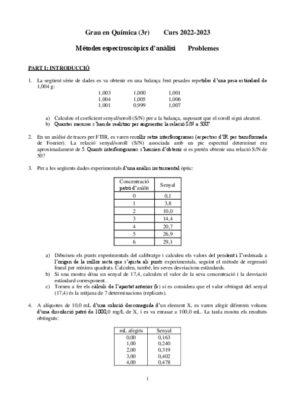 He publicado nuevos ejercicios de 3º Mètodes Espectroscòpics d'Anàlisi: Llistat MEA Problemes 2022-2023.pdf