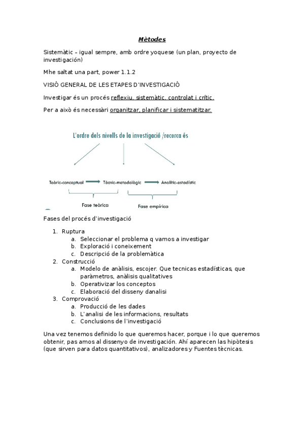 He publicado nuevos apuntes de 2º Mètodes I Tècniques D'investigació Social: Mètodes