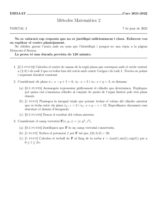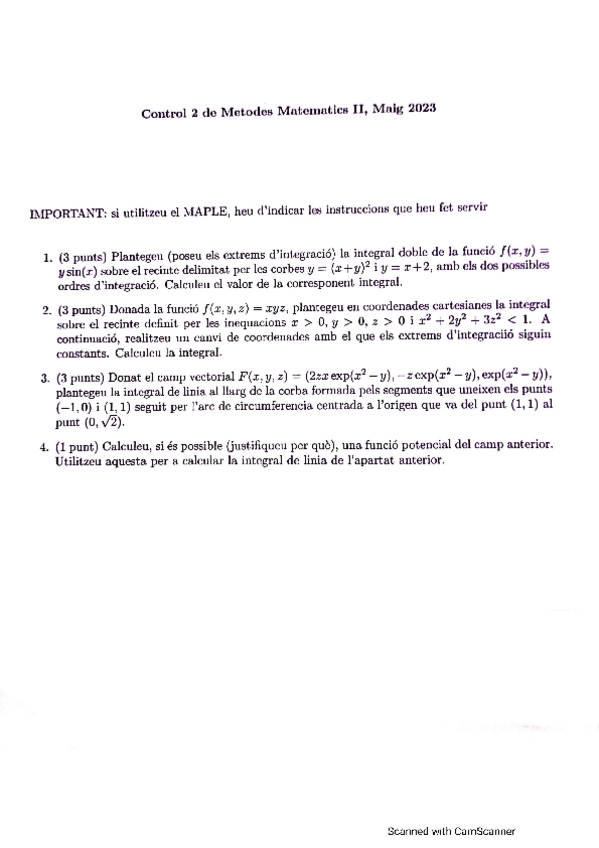 He publicado nuevos examenes de 1º Mètodes Matemàtics II: Enunciats 2n parcial