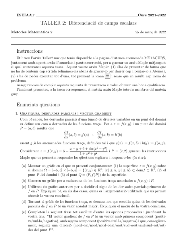 He publicado nuevos ejercicios de 1º Mètodes Matemàtics II: Ejercicios Tema 1 - Campos escalares, diferenciación