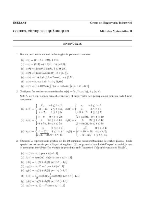 He publicado nuevos ejercicios de 1º Mètodes Matemàtics II: Ejercicios Tema 0 - Curvas