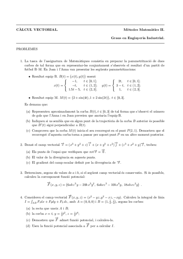 He publicado nuevos ejercicios de 1º Mètodes Matemàtics II: Exercicis Camps Vectorials