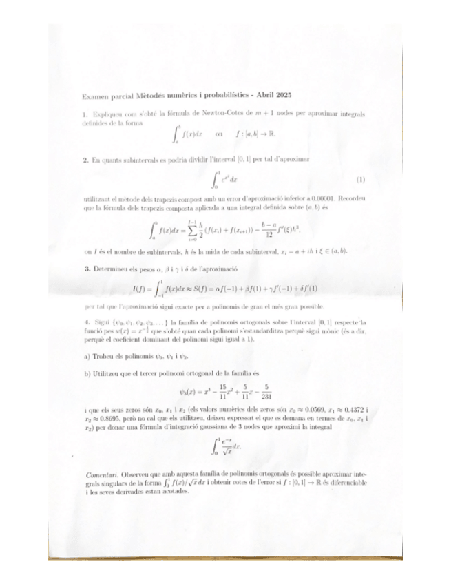 He publicado nuevos examenes de 2º Mètodes Numèrics i Probabilístics: Parcial-1-2024-25-Metodes-numerics-i-probabilistics.pdf