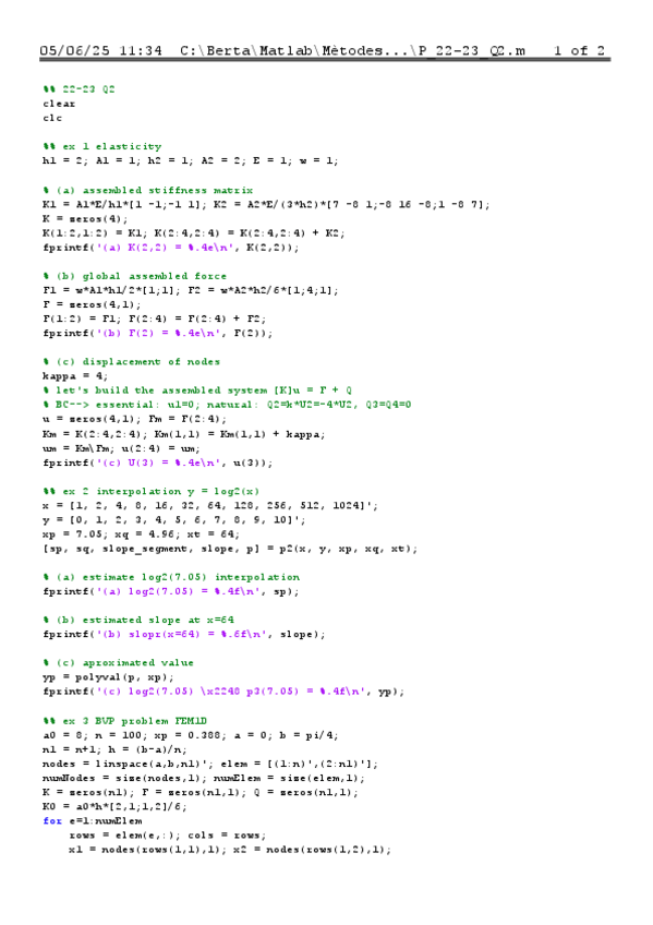 Matlab: solved exams