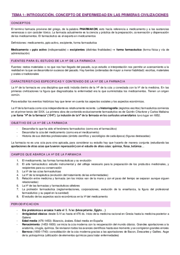 Temario completo de AMBAS PARTES (Historia de la Farmacia y Metodología Científica). En el caso de Metodología se recomienda comparar y seguir con la presentación del profesor, en donde hay ejemplos explicativos.