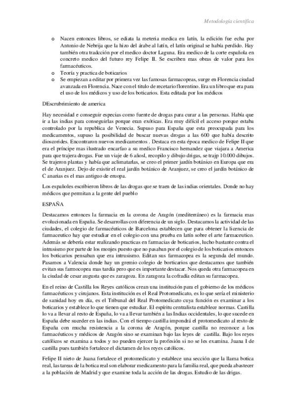 Subo los apuntes de Metodología Científica, parte de Historia de la Farmacia (profesor: Luis Alberto del Río) en español. Si algo no os cuadra, me he podido equivocar yo, y pido disculpas por adelantado. Siempre es bueno pedir tutorías para aclarar cierta