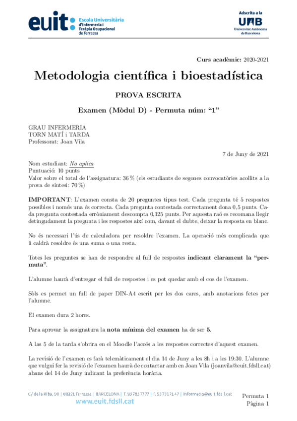 He publicado nuevos apuntes de 1º Metodologia Científica i Bioestadística: Exa07June2021Permuta1.pdf