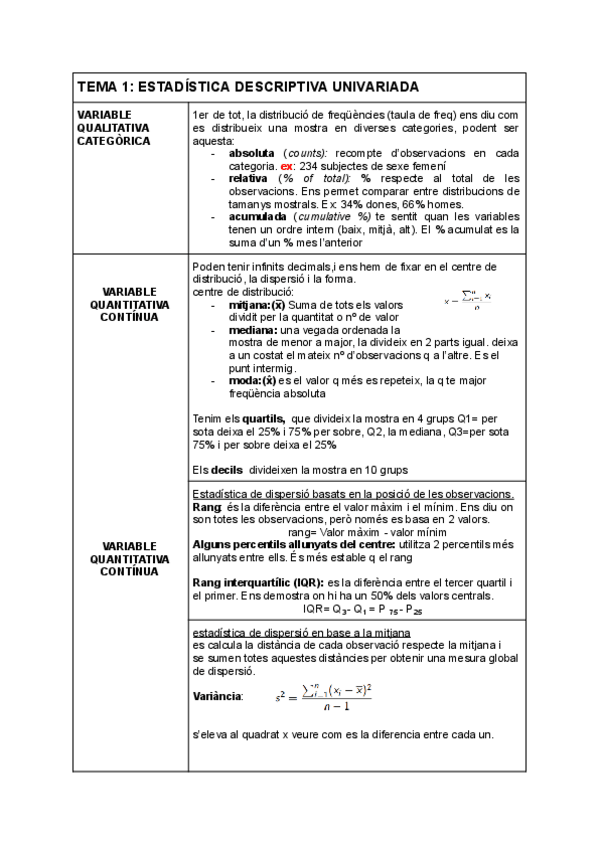 Document llarg perquè hi ha molts exemples pràctics (numèrics) per entendre els conceptes amb les seves respectives fórmules!