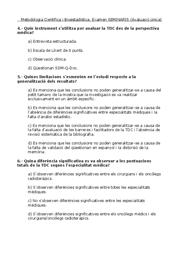 Simulacre d'examen de la part de seminaris d'avaluació única creat amb una aplicació