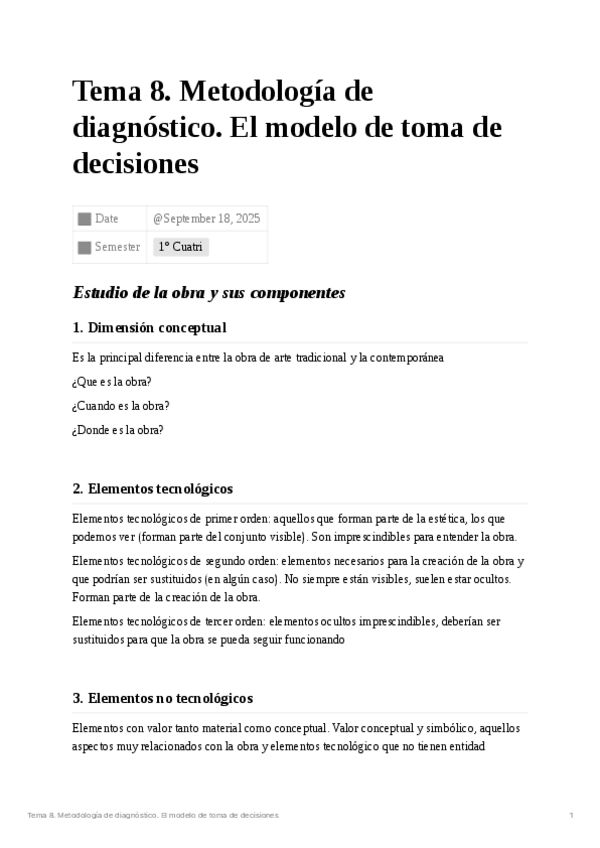 He publicado nuevos apuntes de 3º METODOLOGÍA DE CONSERVACIÓN Y RESTAURACIÓN DE ARTE CONTEMPORÁNEO I: Tema8.Metodologadediagnstico.elmodelodetomadedecisiones.pdf