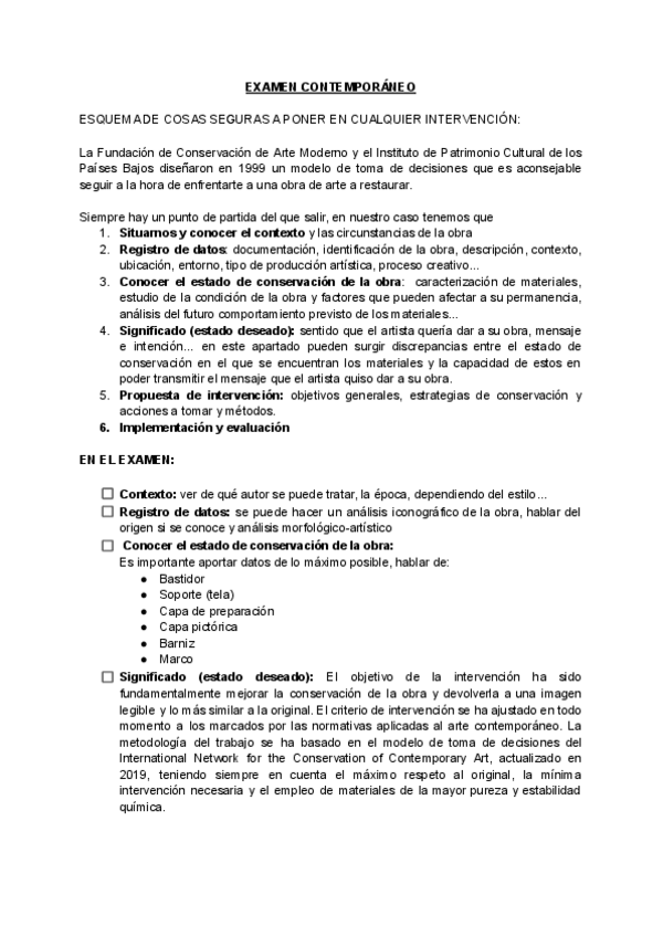 He publicado nuevos examenes de 3º METODOLOGÍA DE CONSERVACIÓN Y RESTAURACIÓN DE ARTE CONTEMPORÁNEO I: EXAMEN-CONTEMPORANEO.pdf