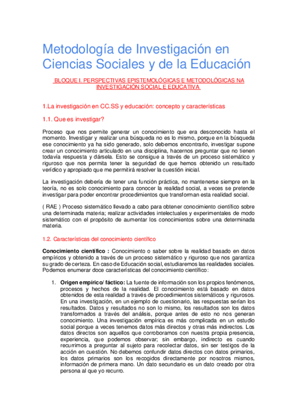 He publicado nuevos apuntes de 1º Metodología de Investigación en Ciencias Sociales y de la Educación: Bloque-I.pdf