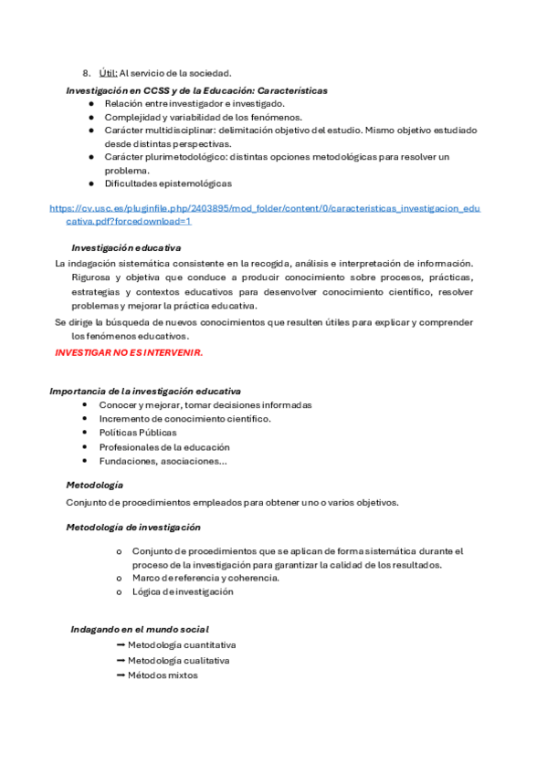 He publicado nuevos apuntes de 1º Metodología de Investigación en Ciencias Sociales y de la Educación: caracteristicasinvestigacioneducativa.pdf