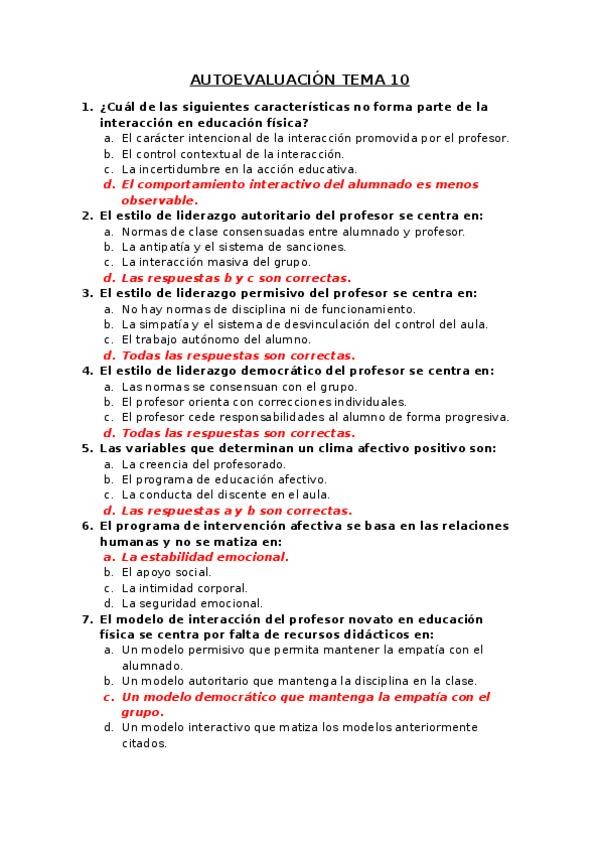 He publicado nuevos examenes de 3º Metodología de la Enseñanza en Actividad Física y Deporte: AUTOEVALUACIÓN TEMA 10.doc