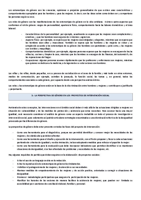 Tema 1: intervención social y tema 2: investigación social. Falta la parte de perspectiva de género