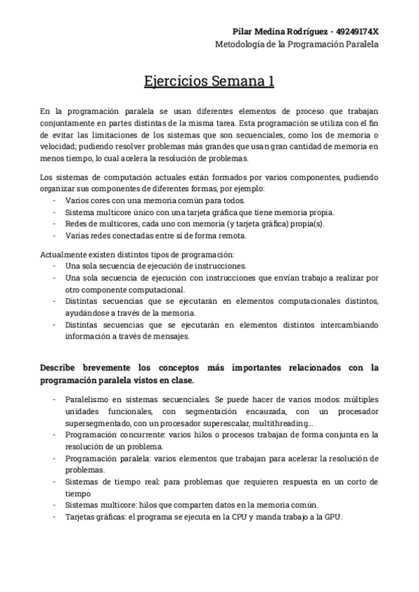 He publicado nuevos apuntes de 4º Metodología de la Programación Paralela: Tareas Semanales