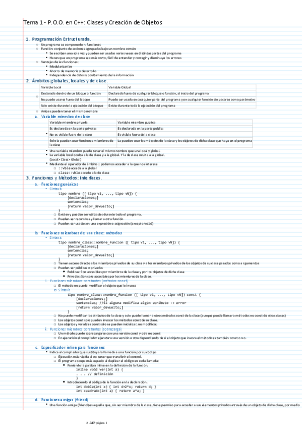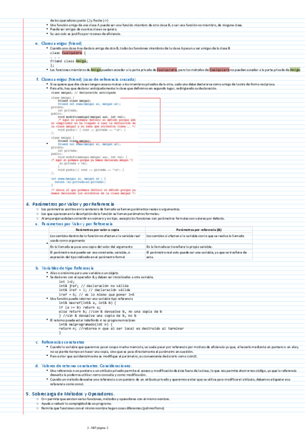MP RESUMEN COMPLETO INCLUYENDO: C++: - Constructores y Destructores - Sobrecarga de Operadores - Clases amigas JAVA: - Constructores y Destructores (no hay destructores) - Métodos equals(), toString() MISCELÁNEA: - Métodos static - Herencia - Polimorf